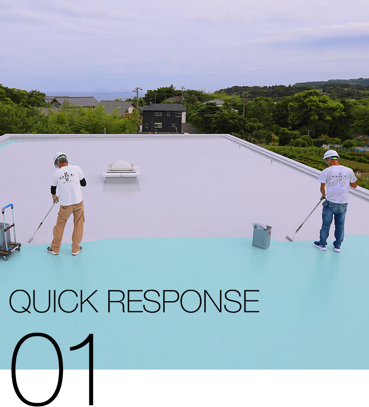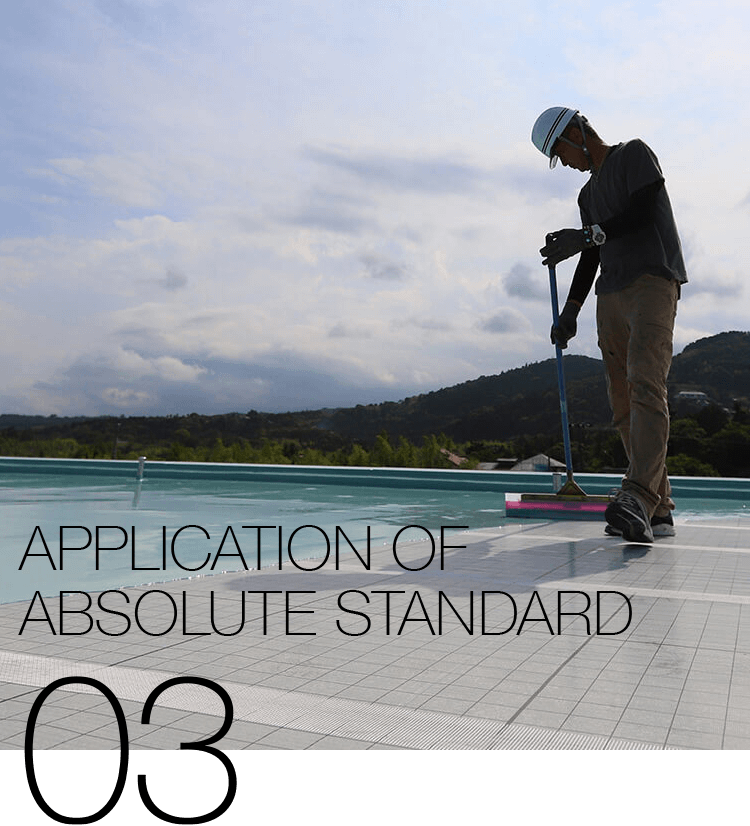 防水の性能と耐久性を確保するために、経験と実績の豊富な自社職人が責任を持って施工をおこないます。