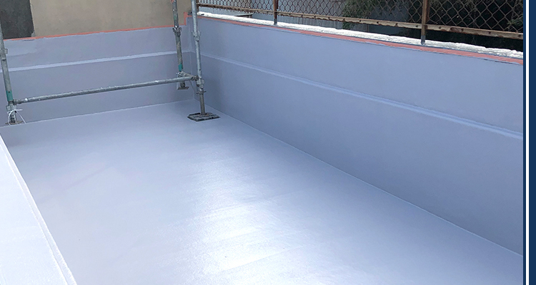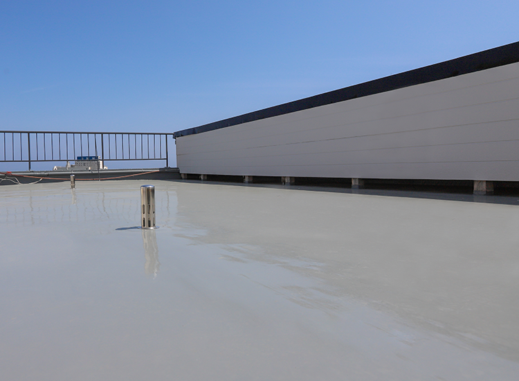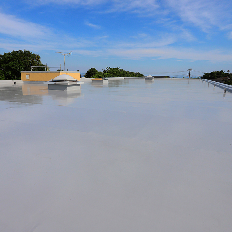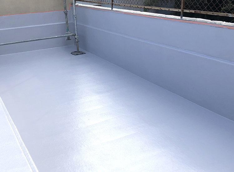 液体状のウレタン樹脂はゴム状で弾性のある防水膜を形成します。液体状の材料を使うため、つなぎ目のないシームレスな仕上がりになります。